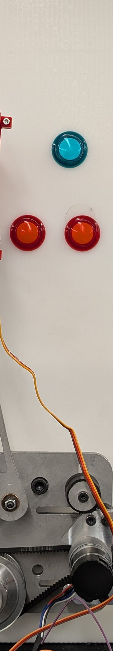 The 2” x 0.5” acrylic piece will connect to the bottom button presser, which is aligned to the three pairs of buttons, while the top presser head will solely push the bonus button.