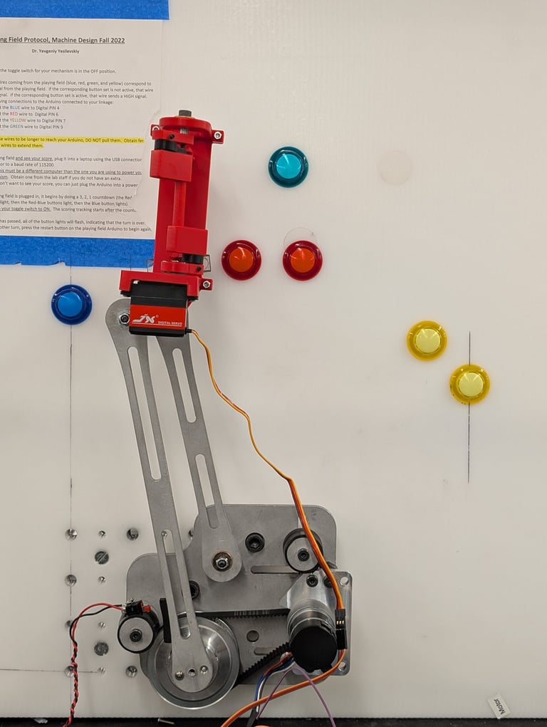 Design, build, and test a powered mechanism that will automatically press arcade buttons on the playing field as rapidly as possible.