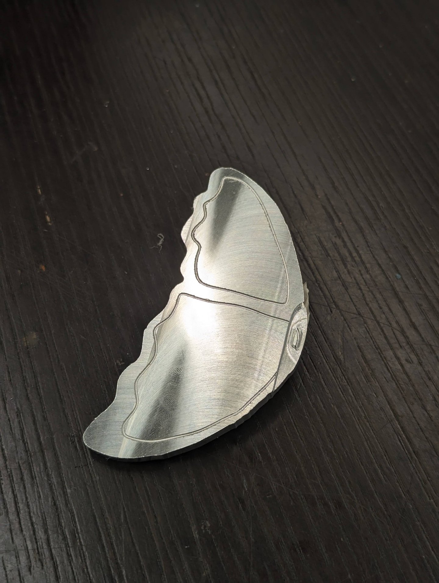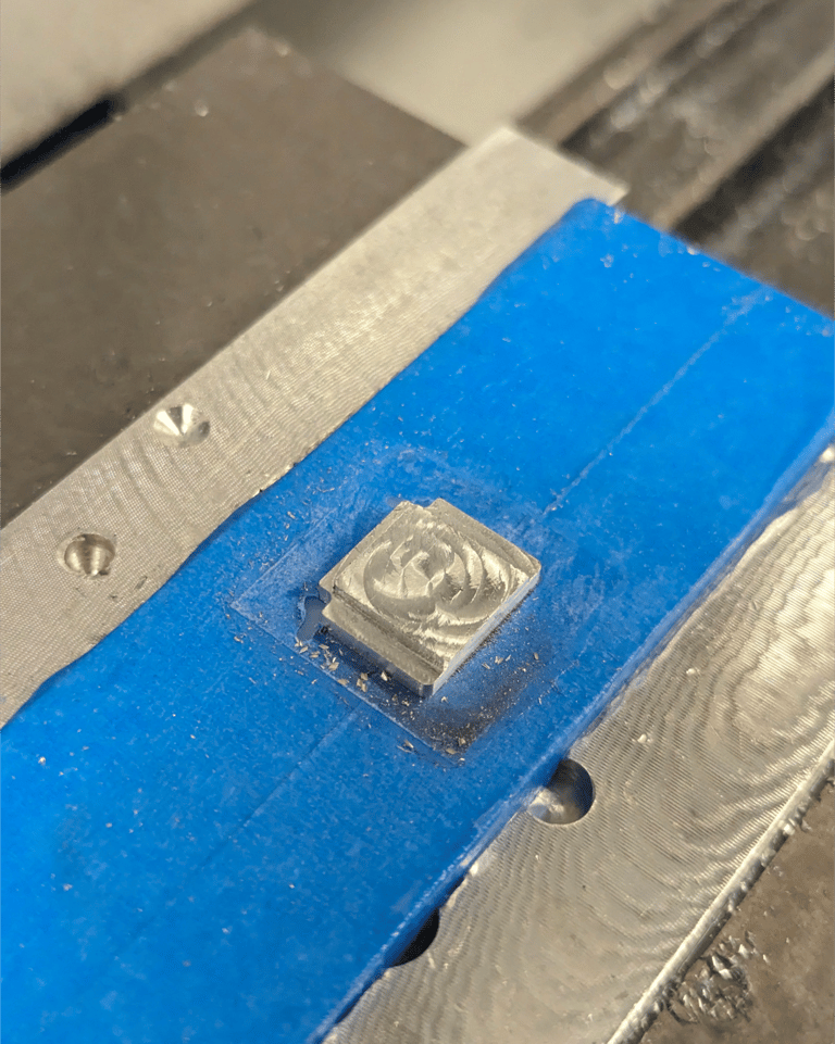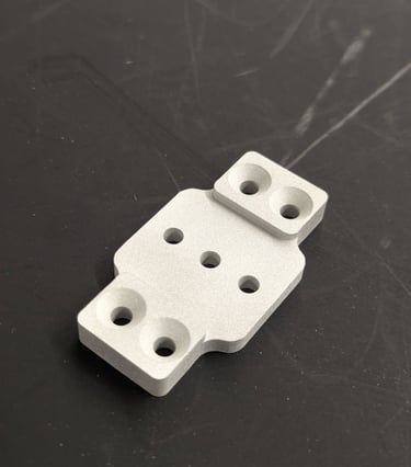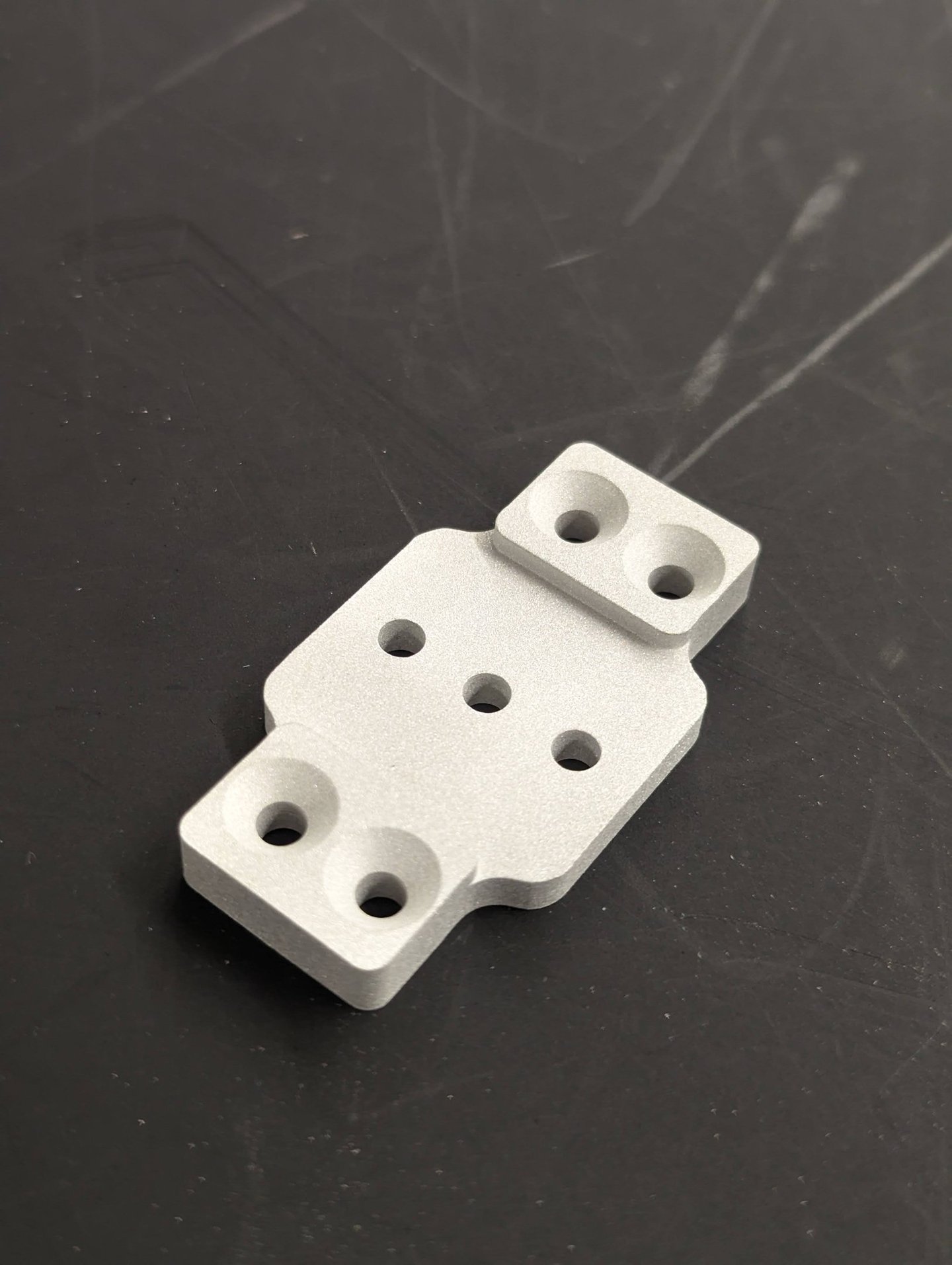 Aluminum piece manufactured using a CNC Tormach Mill and sandblasted for matte finish.
