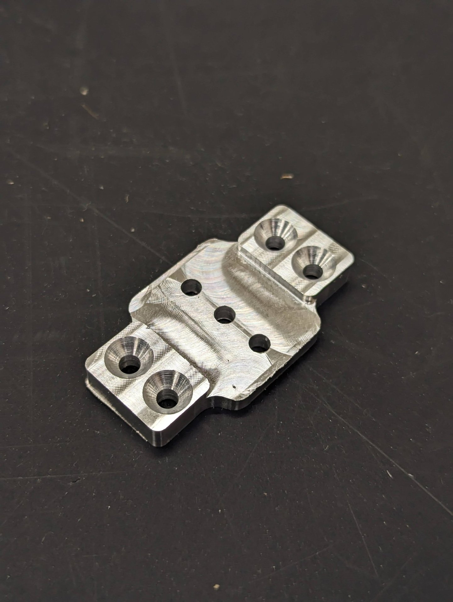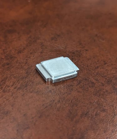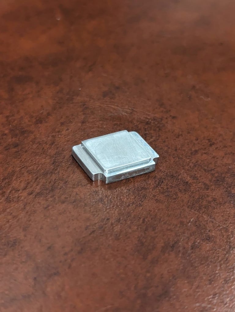 This tiny piece is meant to cover the exposed sensors of a camera hotshoe plate. It is made out of aluminum. The piece was modeled in Fusion 360 and, using CAM, I machined the piece. Given its size, more precise tolerances had to be used.