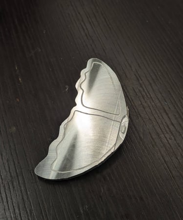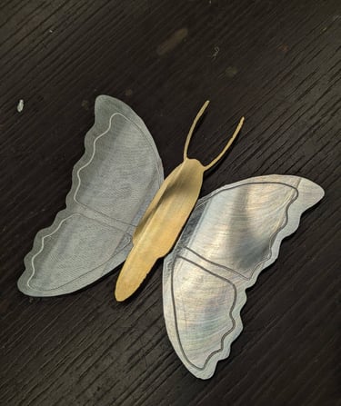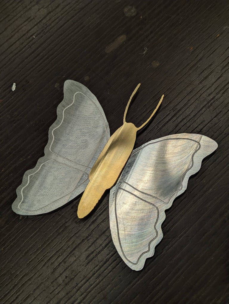 Brass and aluminum assembly manufactured using a CNC Tormach Mill and sandblasted for matte finish. It is comprised of two aluminum wings with slots and a brass body that is placed joined with the wings.