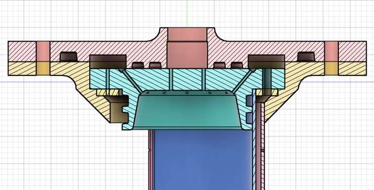 Impinging LOX-ethanol injector with assembly components in Fusion 360
