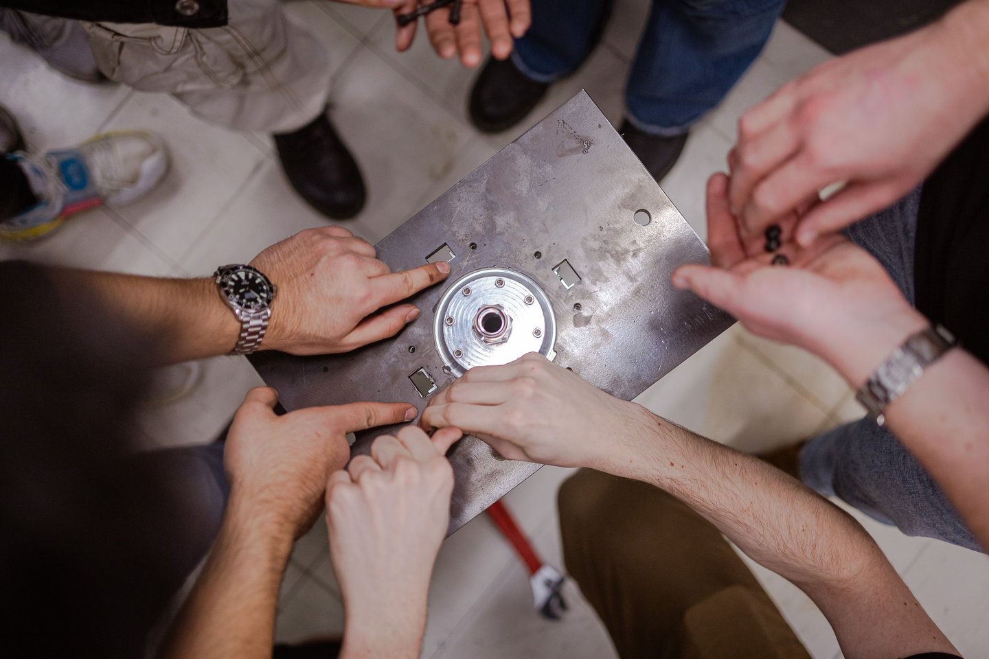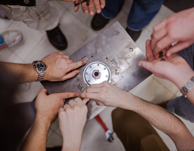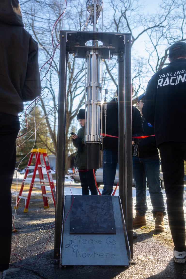 A mid plate was also created out of 1-inch steel using an industrial water jet with mounting holes for the combustion chamber.
